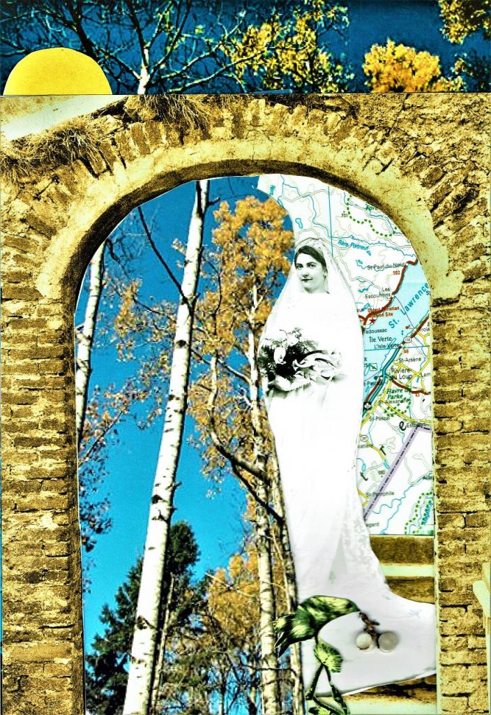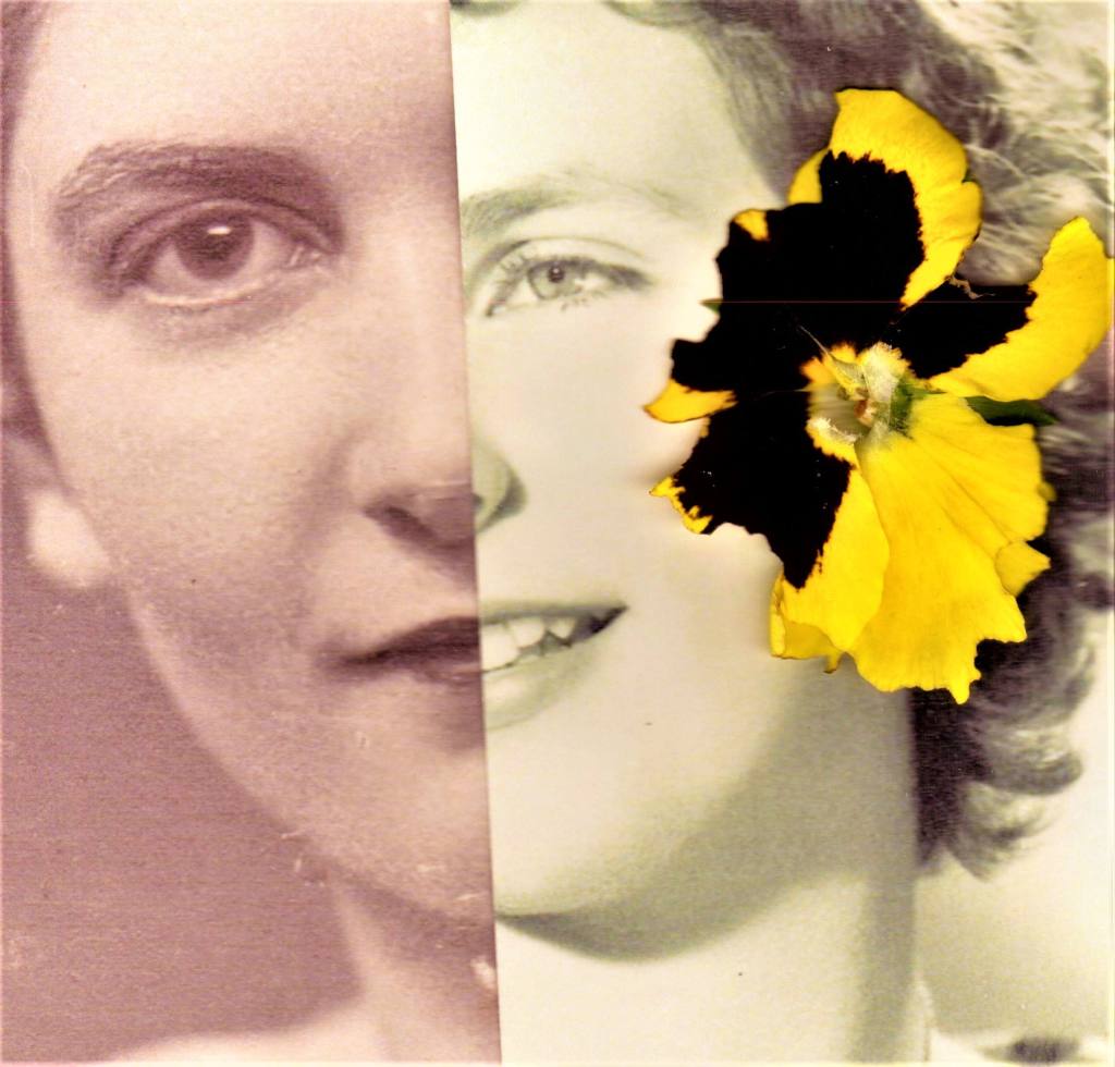 These images are the original hand-made colour photomontages by Lucy Hamilton. She constructed them to prompt a new experimental route into writing ekphrastic poems, using artefacts such as photographs, heirlooms and letters as a way of exploring family relationships through myth, religion, history, gender and geography. Montages onto which she superimposed coloured materials, including india ink, tissue, textiles and garden flora. The poems in Viewer | Viewed seek possible connections and the printed images are improvised and provisional.